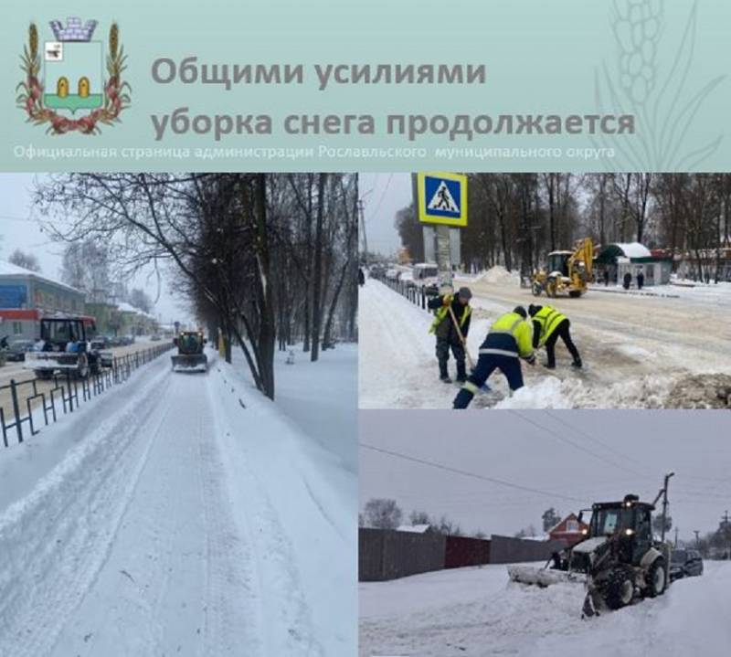 Совместные усилия по борьбе со снегом в Рославле