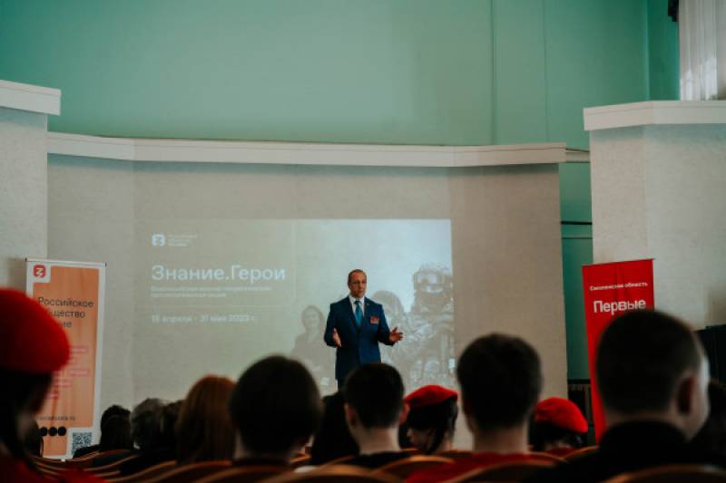 С 18 апреля по 31 мая в России проходит всероссийская военно-патриотическая просветительская акция «Знание.Герои» Российского общества «Знание». В рамках проекта эксперты по истории России, участники специальной военной операции и Герои России делятся с молодёжью личными историями и жизненным опытом. В Смоленском государственном университете о героях нашего времени рассказал ветеран Управления «В» ЦСН ФСБ России, полковник запаса, первый вице-президент Ассоциации «Группы «Вымпел» Владимир Силантьев. Участниками встречи «Мы служим тебе, Россия!» стали более 100 школьников-представителей движения «Юнармия» и Российского движения детей и молодёжи «Движение первых». Владимир Силантьев – очевидец и участник событий, происходивших в школе №1 Беслана 1-3 сентября 2004 года. О героизме он знает не понаслышке. «С трагических событий в Беслане прошло 19 лет. Для кого-то это долгие годы, а для меня и всех очевидцев тех дней всё было будто вчера. Героизм тогда проявили не только участники освобождения, но и сами заложники. А это сегодняшнее прекрасное поколение молодёжи России. Про них необходимо рассказывать школьникам, о них должны знать и брать с них пример. Как мы в своё время шли по жизни с примерами в лице героев Великой Отечественной войны, так же должно быть и сейчас», – сообщил полковник запаса, первый вице-президент Ассоциации «Группы «Вымпел». Как отметил Владимир Силантьев, главное в жизни – любовь, в первую очередь к своей Родине. Спикер рассказал о событиях в Беслане, героях нашего времени, среди которых как военнослужащие, так и простые граждане. Всероссийская просветительская акция продлится до 31 мая и...