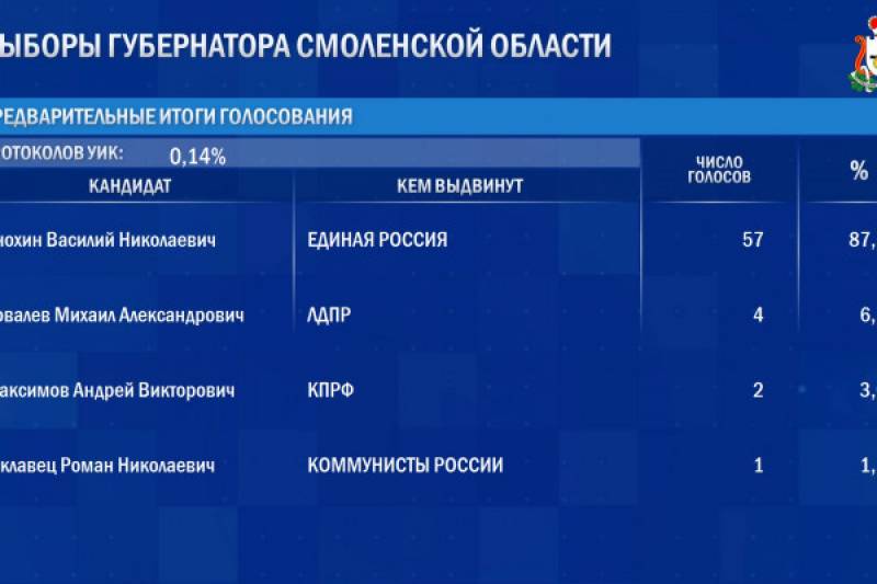 Стали известны предварительные результаты выборов в Смоленской области
