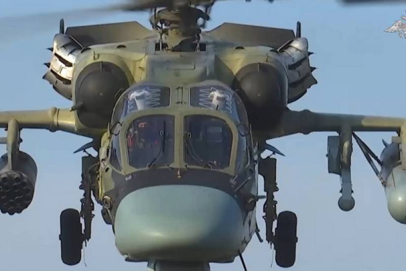 Кадры боевой работы российских ударных вертолётов в зоне СВО