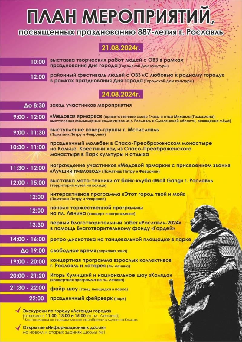 "Программа мероприятий, приуроченных к празднованию 887-летия г Рославль"