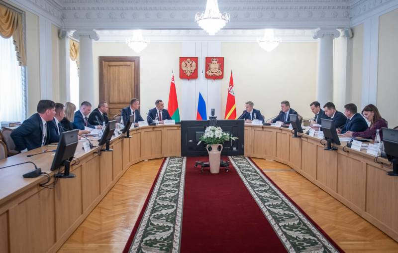 Рабочая встреча Губернатора Василия Анохина с Чрезвычайным и Полномочным Послом Республики Беларусь в РФ Дмитрием Крутым 6 декабря 2023г. | Пресс-служба Администрации областиВ правительстве региона состоялась рабочая встреча Губернатора Василия Анохина с Чрезвычайным и Полномочным Послом Республики Беларусь в РФ Дмитрием Крутым. Стороны обсудили вопросы сотрудничества в сферах экономики, машиностроения, сельского хозяйства, дорожного строительства, образования, культуры. Говоря о сотрудничестве, Василий Анохин отметил, что на сегодняшний день на территории региона зарегистрированы и функционируют более 4,5 тысяч предприятий с белорусским капиталом. Они осуществляют свою деятельность в сфере дорожного строительства, транспортной логистики, льноводства, промышленности. В их числе – компания «Легпромразвитие» по пошиву спецодежды в Ярцево, «Бел Лайт Групп» по производству LED-ламп в Смоленске, производитель стеклощариков «Стим-2» в Рославле, предприятие «Русэлпром», являющееся одним из ключевых партнеров «Белаз» и др. Дмитрий Крутой: Продолжительное время Смоленская область является постоянным партнером Витебской области. На сегодняшний день ваш регион входит в пятерку внешнеторговых партнеров Витебской области. Постоянные международные контакты поддерживают более 340 предприятий. В текущем году вы даже «обошли» такой мегаполис, как Санкт-Петербург. Также в ходе встречи уделили внимание интенсификации отношений в части обеспечения квалифицированными кадрами из Республики Беларусь предприятий Смоленской области. В настоящее время в ряде районов Смоленщины уже задействованы белорусские подрядчики для проведения работ по дорожному строительству, благоустройству парков, скверов. В свою очередь, Чрезвычайный и Полномочный Посол Республики Беларусь в РФ Дмитрий Крутой сообщил о готовности белорусской стороны активизировать участие в строительстве социальных объектов, реконструкции дорог и мостовых сооружений в Смоленской области. Отдельной темой обсуждения стала закупка общественного транспорта, дорожной, строительной, сельскохозяйственной техники у белорусских производителей. В этом году уже приобретено 45 автобусов марки «МАЗ». Также в планах закупка более 100 единиц техники у АМКОДОР, МАЗ, МТЗ. Кроме этого, с учетом потребностей области в модернизации парка сельскохозяйственной, грузовой, пассажирской и другой техники белорусская сторона готова принимать необходимые меры для создания сборочных производств. Кроме этого, рассматривались перспективы создания в регионе мультибрендового центра обслуживания белорусской техники, количество которой увеличивается в Смоленской области. В развитие темы сельского хозяйства обсуждался вопрос сотрудничества ведущего льносеющего предприятия Смоленской области ООО «РУССКИЙ ЛЁН» с представителями Республики Беларусь в части создания совместного селекционно-семеноводческого центра конкурентоспособных сортов лубяных культур (в частности льна-долгунца) на базе предприятия. Что касается туризма, то с каждым годом поток в Смоленскую область из Республики Беларусь растет. В этой связи обсуждалось создание первого международного туристско-информационного центра Союзного государства на территории города Смоленска. Напомним, концепция проекта уже получила 