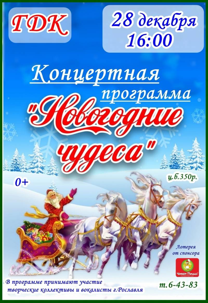 Городской Дом культуры приглашает на праздничный концерт «Новогодние чудеса»