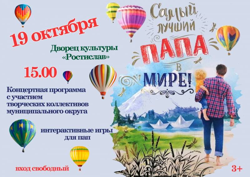 Приглашаем вас посетить концертную программу под названием «Самый лучший папа в мире», приуроченную к прекрасному празднику – Дню отца. Событие состоится 19 октября 2025 года в 15:00 во Дворце культуры «Ростислав».