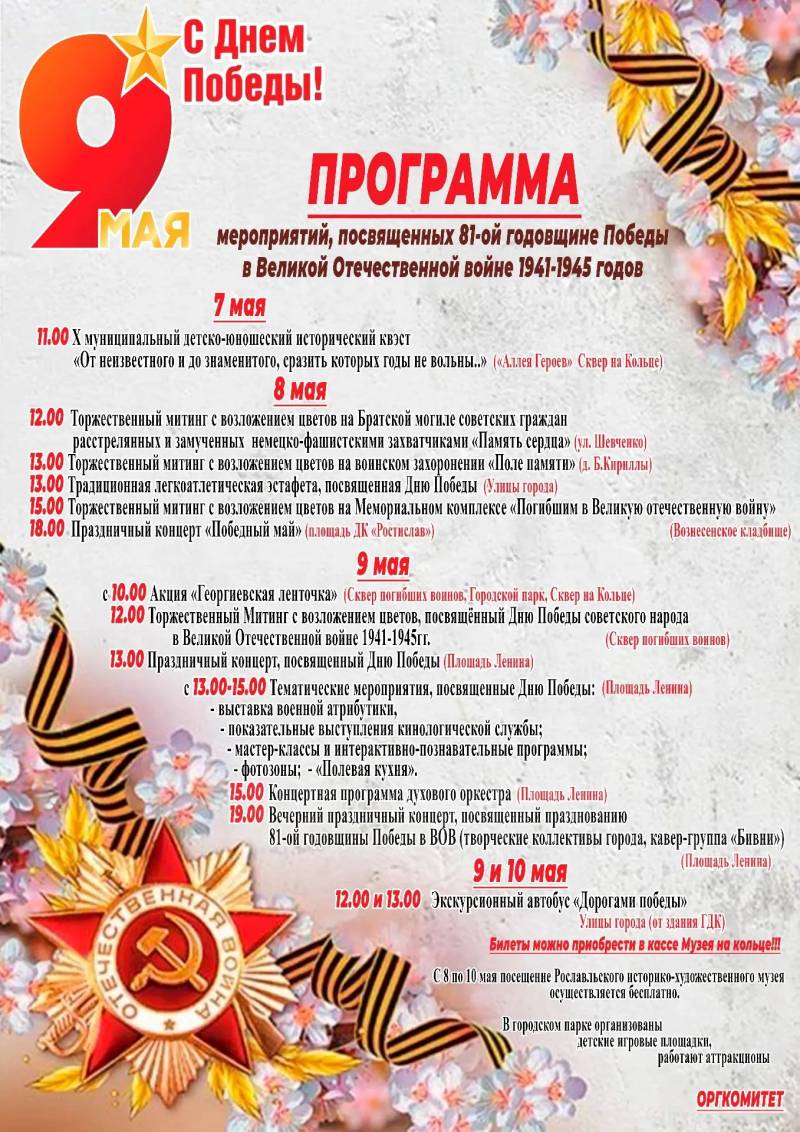 Программа мероприятий, посвященных 81-ой годовщине Победы в Великой Отечественной войне 1941-1945 годов