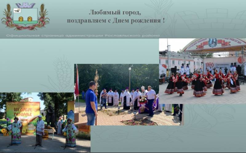 Любимый город поздравляем с Днем рождения! 22 августа 2023г. | Пресс-служба Администрации Рославльского районаПраздничные мероприятия, посвященные 1160-летию Смоленска и 886-летию Рославля, начались еще 18 августа. В этот день большая часть их была подготовлена для детей: эти развлекательные и веселые игры и программы понравились и дошкольникам, и их родителям. На трех площадках в сквере на кольце, возле ДК «Ростислав» и Центра творчества детей и юношества организаторы предложили им массу самых разных заданий и забав. Ребята, в свою очередь, с интересом и азартом их выполняли, узнали много нового об истории нашего города и Смоленщины, в целом. 19 августа с самого утра праздник развернулся с новой силой. В парке культуры и отдыха началась бойкая торговля. На любой вкус можно было попробовать мед и его продукты, увидеть мастеров – художников и гончара, плетения из бересты и лент, купить деревянные поделки, сувениры из глины и металлов, цветы и сувениры. Многие успели приобрести футболки от рославльских швейных предприятий, посвященные Дню города. На площадке перед памятником Святым благоверным Петру и Февронии Муромским пели и танцевали артисты в народных костюмах. Работали карусели, аттракционы и кафе, можно было полакомиться шашлыками и выпечкой. По традиции в этот день особые почести воздают основателю нашего города Святому князю Ростиславу. У его памятника на кольце состоялись возложение цветов и молебен. В них приняли участие Глава муниципального образования «Рославльский район» В.В. Ильин, епископ Рославльский и Десногорский Мелетий, почетные гости из Администрации Смоленской области заместители Губернатора Смоленской области А.С. Ахметшин и А.В. Кучумов, и.о. начальника Департамента Смоленской области по сельскому хозяйству и продовольствию О.А. Мелехова. Торжественная церемония открытия прошла на площади Ленина. Много добрых слов и поздравлений прозвучало в этот день в адрес Смоленска и Рославля, современных жителей Смоленщины и предшествующих поколений. «…Когда пургой над Русью бушевали войны, гремел Смоленск, гудел в колокола. И поднимался грудью, стеною крепостною на ратные бессмертные дела», - по- особому торжественно звучали сегодня эти слова, как дань великой памяти городам – воинам, городам – труженикам, старшему и младшему братьям, которые на протяжении сотен лет имеют общую историческую судьбу. С Днем рождения Рославль поздравили: - заместитель Председателя Государственной Думы Федерального собрания Российской Федерации С.И. Неверов: «Уважаемый Валерий Владимирович! Поздравляю Вас и всех жителей Рославля с Днем города! Древний Рославль - живой свидетель славных и трагических страниц истории нашей Родины. За эти годы жители города прошли через многое-давали отпор иноземным захватчикам, не раз восстанавливали разрушенное войной хозяйство в тяжелейших условиях. Сегодня Рославль - это современный город, богатый культурным и историческим наследием, важный транспортный узел и промышленный центр Смоленской области, но главное ваше достояние-это люди чтящие традиции и память предков, оставившие яркий след в истории нашей Родины. Желаю Вам и всем жителям Рославля крепкого здоровья и благополучия, а городу-развития и процветания!». - Глава муниципального образования «город Десногорск» А.А. Терлецкий: «Уважаемый