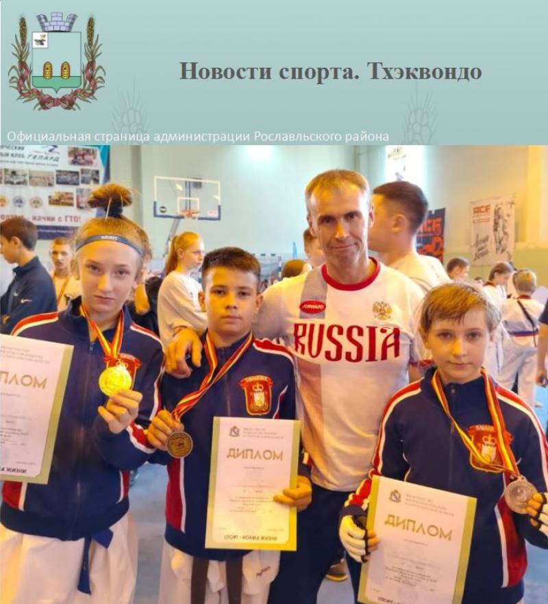 Новости спорта. Тхэквондо 27 сентября 2023г. | Комитет по культуре, спорту и молодежной политике 22-24 сентября в городе Курске прошёл открытый Чемпионат и первенство Курской области по тхэквондо.В соревнованиях приняло участие 360 спортсменов из Курской, Воронежской, Белгородской, Тульской, Смоленской областей. 11 спортсменов ДЮСШОР «Юность России» отделения тхэквондо г. Рославль приняло участие в соревнованиях. Победителями и призёрами стали:  - Среди юниоров 2007-2009 г.р. - 1 место в весовой категории 49 кг занял Иванов Николай; - Среди юношей и девушек 2010-2012 г.р. - 1 место в весовой категории 47 кг заняла Валерия Горох, 3 место в весовой категории 37 кг заняла Есения Доманова, 3 место в весовой категории занял Сергей Рагулин; - Среди младших девушек 2011-2012 - 1 место в весовой категории 48 кг заняла Горох Валерия, 3 место в весовой категории 37 кг заняла Есения Доманова; - Среди мальчиков и девочек 2013-2014 - 1 место в весовой категории 33 кг заняла Есения Лезликова, 3 место в весовой категории 33 кг занял Максим Агеев. Поздравляем победителей и призеров!!!