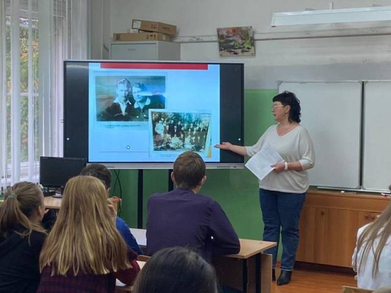 В гостях у школьников МБОУ «Астапковичская средняя школа» 13 октября 2023г. | По материалам РИХМВ память об учителях, сражавшихся на фронтах Великой Отечественной войны, трудившихся в тылу, восстанавливавших города и села после освобождения страны от фашистов, в МБОУ "Астапковичская средняя школа" прошло выездное мероприятие "Учителя-фронтовики". Учителя-фронтовики! Они сражались не только за Родину. Учителя, завучи, директора школ и воспитатели, прошедшие Великую Отечественную войну, стали достоянием всей страны и героическим примером для каждой школы, для всех поколений учителей и учеников. В годы Великой Отечественной войны немало педагогов воевало на фронте. Учителя – ветераны, как много общего в их фронтовых биографиях! 17 - 20 - летние, они уходили на фронт из школ вместе со своими учениками и их родителями.Учителя в боях показывали пример отваги, мужества, воинского мастерства, находчивости и смекалки. Но и в самых сложных боевых обстоятельствах учитель, ставший солдатом, оставался педагогом-воспитателем, словом и делом воодушевлял бойцов на подвиги, учил искусству побеждать врага. Гордостью дивизий и полков, батальонов и рот были на фронтах многие учителя! Глубочайшее уважение народа к учителям, совершившим славные подвиги в сражениях Великой Отечественной войны и после ее победоносного завершения вернувшимся к педагогическому труду.