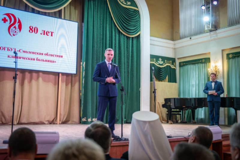 В Смоленске в областной филармонии прошло торжественное мероприятие, приуроченное к 80-летию областной клинической больницы. Медицинский персонал с юбилейной датой поздравил Губернатор Василий Анохин. В торжественном мероприятии также приняли участие представители исполнительной и законодательной власти региона, духовенства, общественных организаций. Обращаясь к коллективу флагманского медицинского учреждения региона, Глава региона отметил, что в областной клинической больнице созданы необходимые условия для оказания качественной медицинской помощи смолянам. В частности, Василий Анохин подчеркнул, что в больнице работают высокопрофессиональные врачи, установлено современное оборудование. При этом больница начала работу во время Великой Отечественной войны и на сегодняшний день продолжает развиваться. «Важно, что вы сохраняете преемственность поколений и верность традициям, успешно сочетаете практическую и научную деятельность, уважаете своих пациентов и дорожите деловой репутацией», – сказал Губернатор. Также он добавил, что в настоящее время развитие сферы здравоохранения – это ключевое направление. «Правительство Смоленской области будет помогать в решении существующих здесь проблем, прежде всего с ремонтом зданий и помещений. Скоро завершится ремонт крыши хирургического корпуса. И уже в следующем году отремонтируем его внутренние помещения. У вас должны быть комфортные условия для работы, а у пациентов – для полноценного лечения», – отметил Василий Анохин. Далее за многолетний добросовестный труд, высокопрофессиональное исполнение служебных обязанностей и в связи с 80-летием со дня...