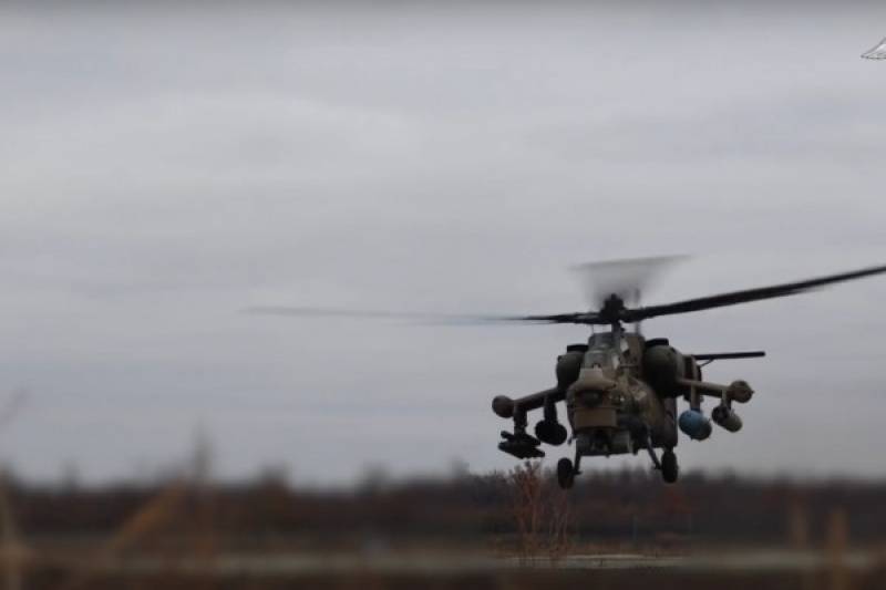 Экипажи Ми-28нм нанесли удар по бронированной технике и живой силе противника в приграничном районе Курской области