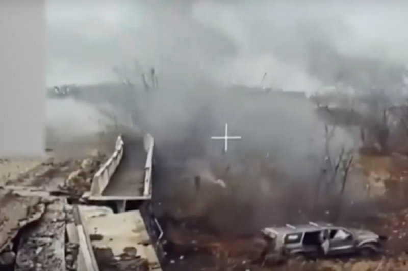 Первый FPV-дрон, управляемый российскими операторами, поразил разбегающихся боевиков-операторов БПЛА ВСУ