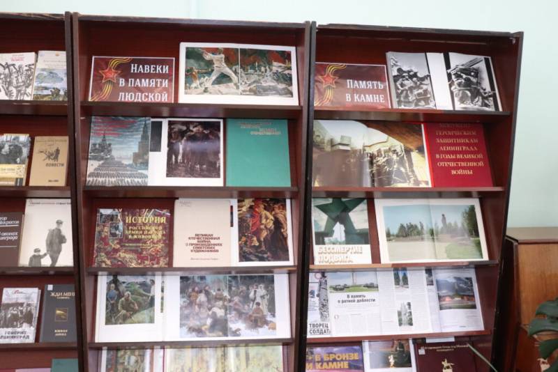 Другие разделы выставки включают "Навеки в памяти людской", где представлены книги об искусстве и памятниках, увековечивающих подвиг советского народа в годы войны, и "Память в камне", который включает издания, посвященные этим памятникам.