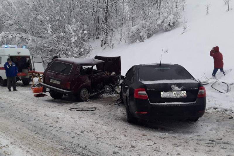 В Смоленском районе в лобовую столкнулись «Нива» и «Шкода»