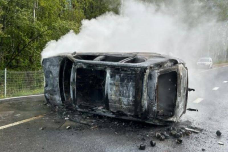 На трассе М-1 в Смоленском районе «Ниссан» перевернулся и загорелся
