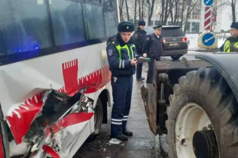 В Смоленске на пересечении улиц Дзержинского и Нахимова столкнулись маршрутка и трактор