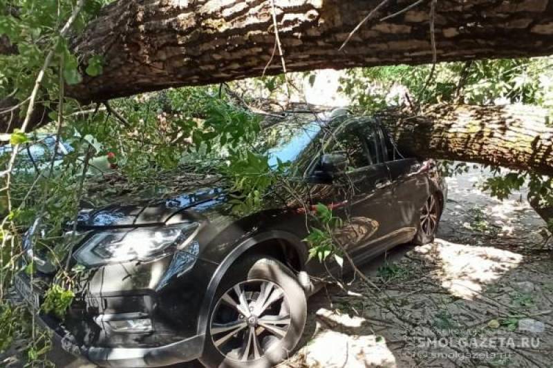 В Смоленске дерево рухнуло на припаркованные автомобили