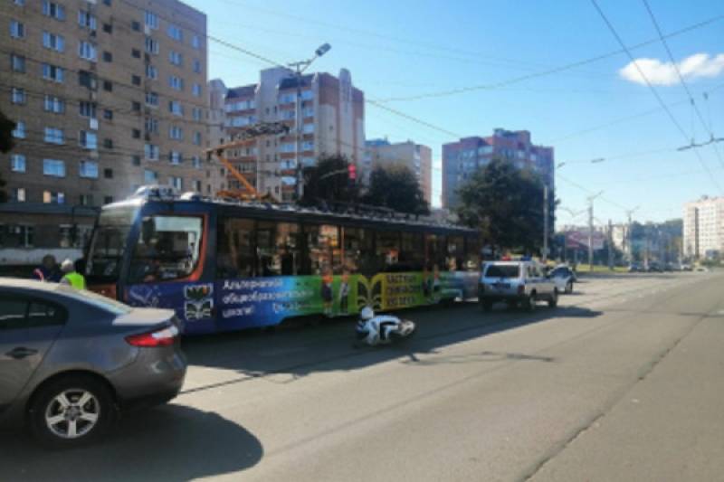 В Смоленске напротив «Макси» случилось ДТП с участием мотоцикла и трамвая