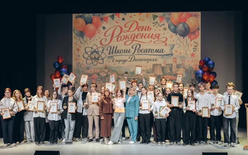 Масштабное праздничное мероприятие, прошедшее в Городском центре досуга, объединило учащихся школ, воспитанников детских садов, педагогов, родителей — всех жителей Десногорска, вовлеченных в большой отраслевой школьный проект. Ярким подарком к 15-летнему юбилею стали «живые открытки» от юных талантов, которые развиваются благодаря проекту при поддержке Смоленской АЭС и города. «Дорогие школьники Росатома, наш проект развивается и объединяет уже 31 атомный город. Вы - наше будущее, и завтрашний день Десногорска и Смоленской атомной станции - в ваших руках. Мы видим, как вы учитесь, стараетесь и добиваетесь успехов, и это вызывает искреннюю радость. Нам с вами предстоит заботиться о том, чтобы наш красивый город становился еще лучше, и построить следующую атомную станцию, которая будет вырабатывать электроэнергию для нашего региона и всей страны», - приветствовал юных десногорцев директор Смоленской АЭС Иван Сидоров. Исполняющая обязанности главы Десногорска Злата Бриллиантова отметила, что за годы существования проекта десногорские дети проявили незаурядное мастерство в самых разных направлениях. «Все эти 15 лет мы убеждаемся в том, какие же у нас замечательные, талантливые дети. Я думаю, что мы на этом не остановимся, будем двигаться дальше, и вы будете также ярко раскрываться и показывать свои знания и способности», – подчеркнула она. Центральным событием праздника стала торжественная церемония награждения. Директор Смоленской АЭС Иван Сидоров и и.о. главы города Злата Бриллиантова вручили почетные грамоты и благодарственные письма самым активным участникам проекта «Школа Росатома». За проявленный интерес к науке, инициативность и стремление к знаниям были отмечены 16 школьников из всех учебных заведений города. За высокий профессионализм, творческий подход и значительный вклад в развитие подрастающего поколения награды получили 11 педагогов и методистов. Особое внимание уделили спортивным достижениям – благодарственными письмами отметили учителей физкультуры за организацию городского турнира по баскетболу. Не остались без внимания и участники юбилейной метапредметной олимпиады: Смоленская АЭС приготовила для каждой команды сладкие призы, а все участники получили оранжевые апельсины – яркий символ проекта. Кульминацией торжества стал фестиваль «Живая открытка». Школы и детские сады Десногорска подготовили творческие подарки-поздравления: вокально-хореографические номера, флешмобы, трогательные песни о дружбе. Сцена превратилась в калейдоскоп талантов, еще раз доказав, что «Школа Росатома» – это пространство, где рождаются звезды. В завершение праздника состоялась церемония награждения победителей и призеров муниципального этапа Всероссийской олимпиады школьников. Справочно: Проект «Школа Росатома» реализуется в 31 городе России, а также в Армении и Беларуси, охватывая более 200000 учеников. Проект направлен на выявление и поддержку одаренных детей, внедрение инновационных методик обучения и повышение квалификации педагогов. В Десногорске при поддержке Смоленской АЭС успешно функционируют два «Атомкласса» на базе школ №1 и №3. Госкорпорация «Росатом» активно поддерживает талантливых жителей и молодежь из городов присутствия «Росатом», создает условия для раскрытия творческого потенциала. Еще о