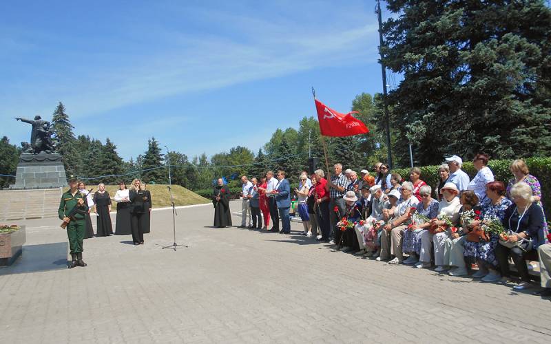 Слово было предоставлено ветерану Великой Отечественной войны Александре Васильевне Базылевой. Проникновенные строки её стихов не раз звучали над этой площадью в дни памятных да. Никого не оставило равнодушным и это выступление: «Тот самый длинный день в году с его безоблачной погодой нам выдал общую беду на всех на все четыре года…».