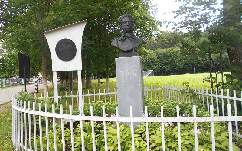 У входа на территорию «Усадьбы Вязёмы» посетителей встречает памятник А.С. Пушкину, установленный в 1937 году.